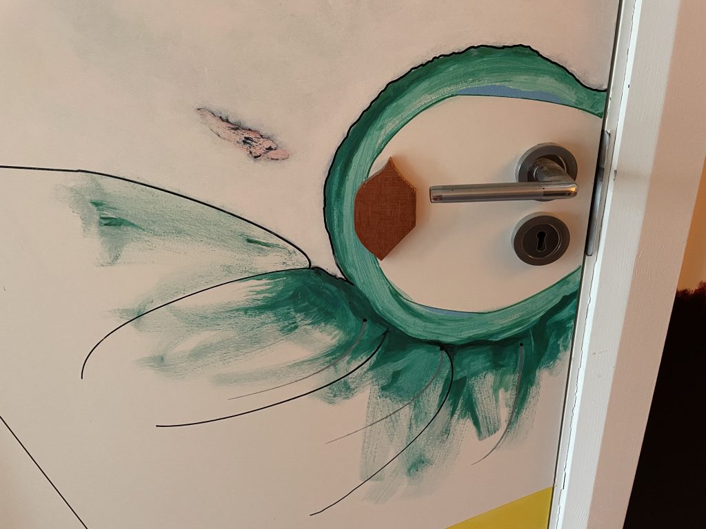 ‘I moved in straight from hospital, so first I had to recover. The whole house was new, a blank canvas. I hung a few drawings. Now I take it further. Have a little fun ‘.