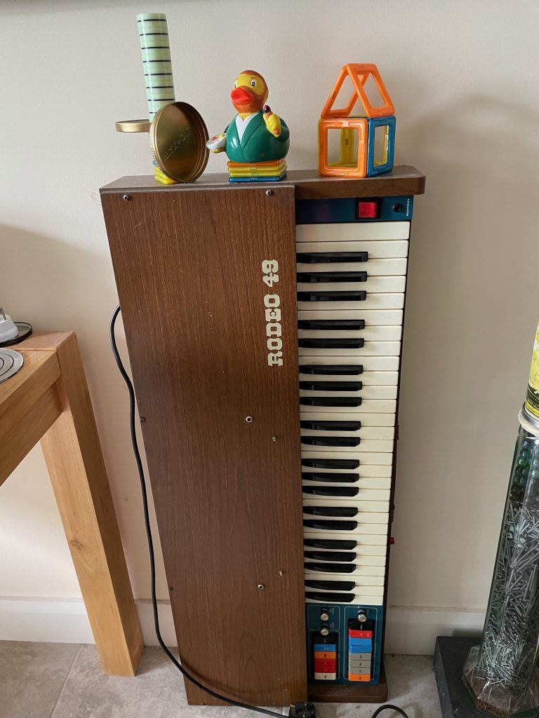 ‘I worked through them, kept my hand in. As they got older, I had my own studio and regular exhibitions. Never lost the focus. Live for Art’ Now his two grandchildren have a door each, upstairs in his house, to paint freely up as far as they can reach. The youngest one loves that her grandad has saved all her pacifiers and they feature in his sculptures.