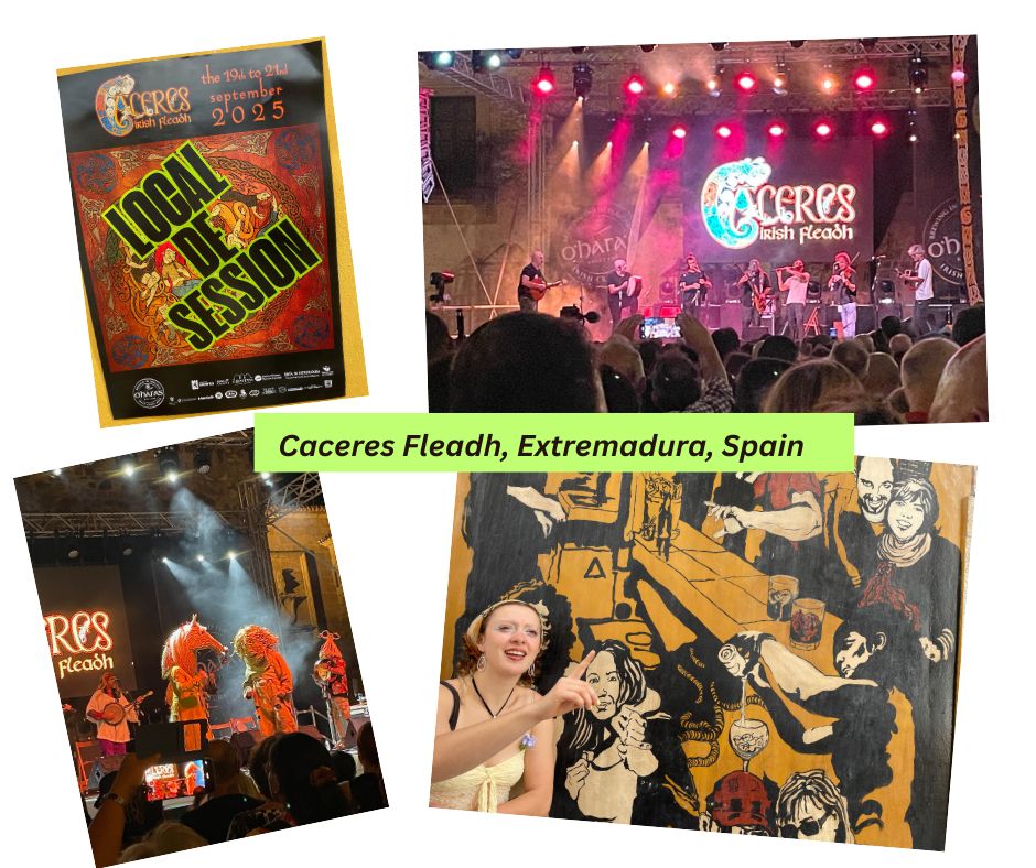 Once I had heard, by chance, earlier this year, that there was an Irish Fleadh in the town of Caceres in Extremadura, in deep rural Spain, I was entranced. Then I learned that this was the 21st year. I couldn’t believe it. It is run by an Irish man and a Spanish woman, both immersed in Irish music, Peter Crann and Patricia Brava. All free and friendly.