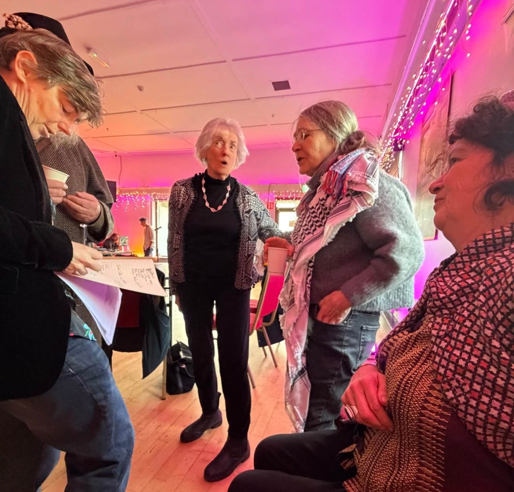 The Raging Grannies were among the first to sing their own lyrics to popular songs and urge everyone to join in their satirical choruses. Lelia Doolin was among them. Sailhymn, a gifted young singer sang their own protest songs, as did Nicole Blue and more.