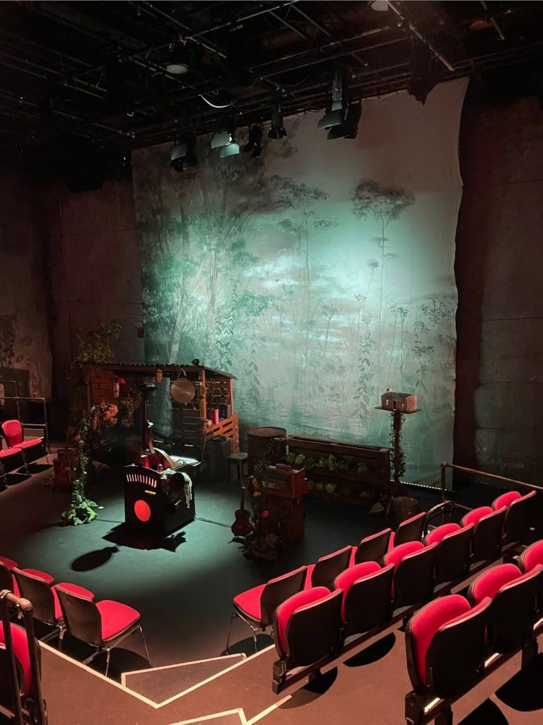 Inside was a surprise. A full set, gorgeous lighting and a delicious feeling that the performance space had been fully inhabited and shaped into a new world and our seats arranged accordingly, on 3 sides.