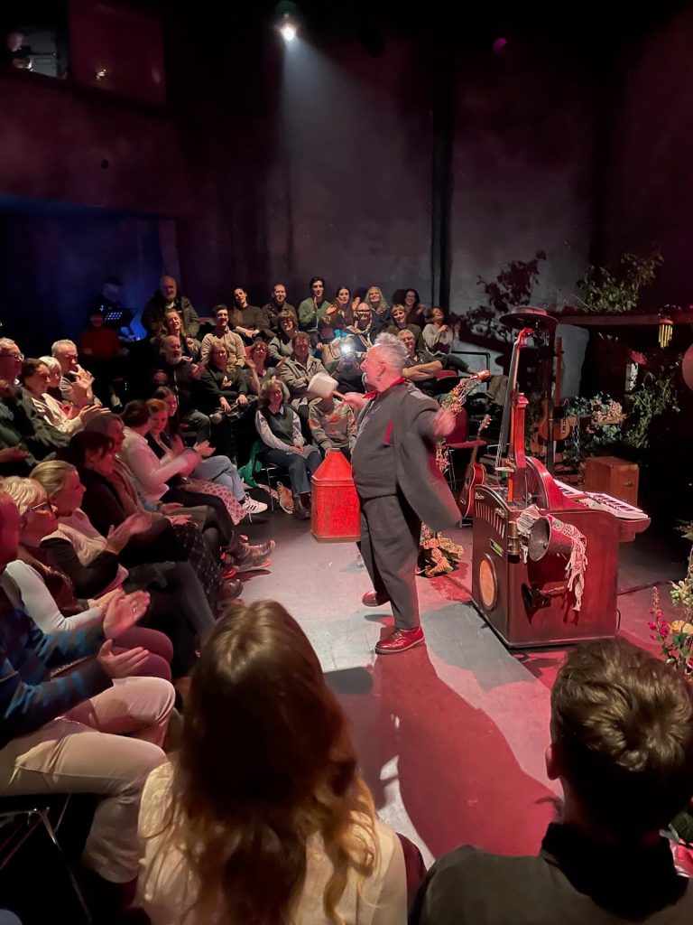 Gentle Punk is not a traditional Little John Nee show involving a story arc or journey. Instead, it is a fluttering through his magical imagination, inhabiting strange creatures and moments of discovery in a timeless present. The show is gently paced and light in tone. He is in rich voice. Playfully, he prises open the thick shells that surround and protect our thoughts. Little John sets us free. Afterwards I found out from Síomha Nee, the young producer, that this was the première. No fuss. The fanfare was the bang on the metal petrol can.
